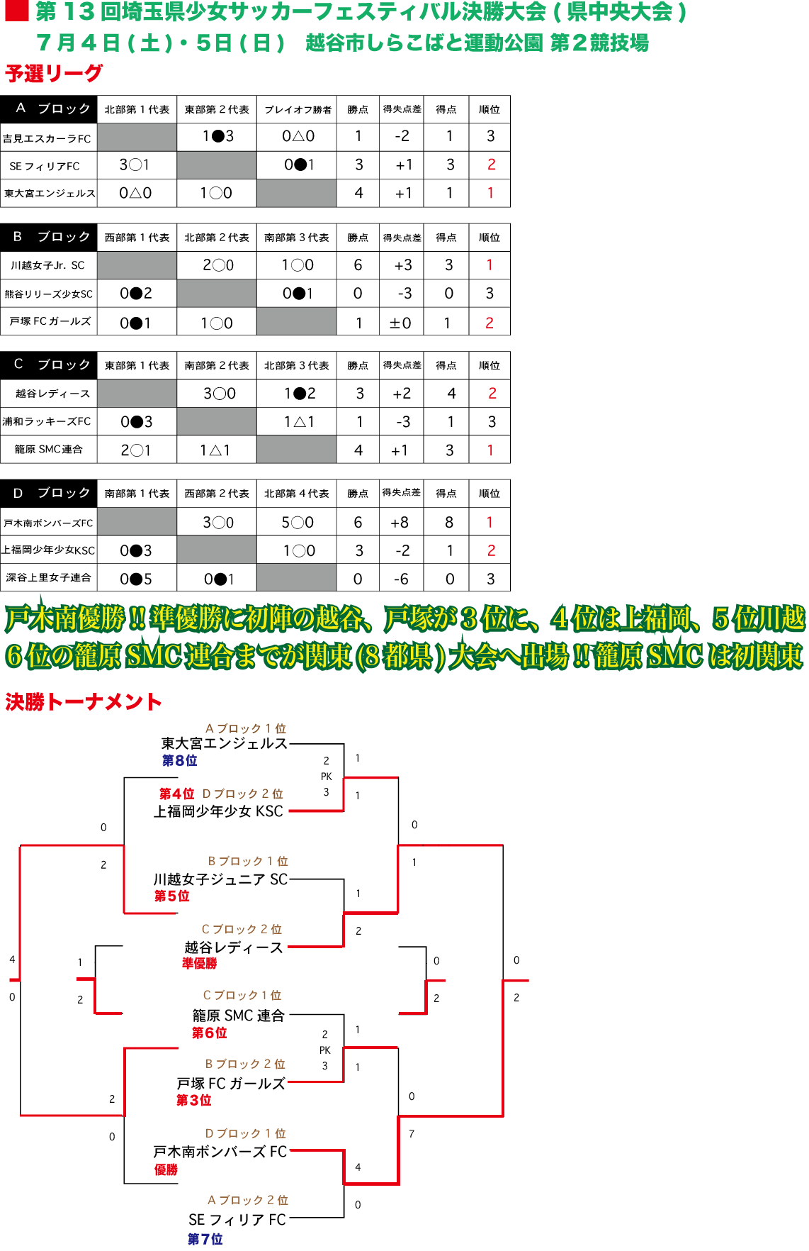 | (1次リーグGブロック1位) | vs 寄居女子SC | 1-0 |